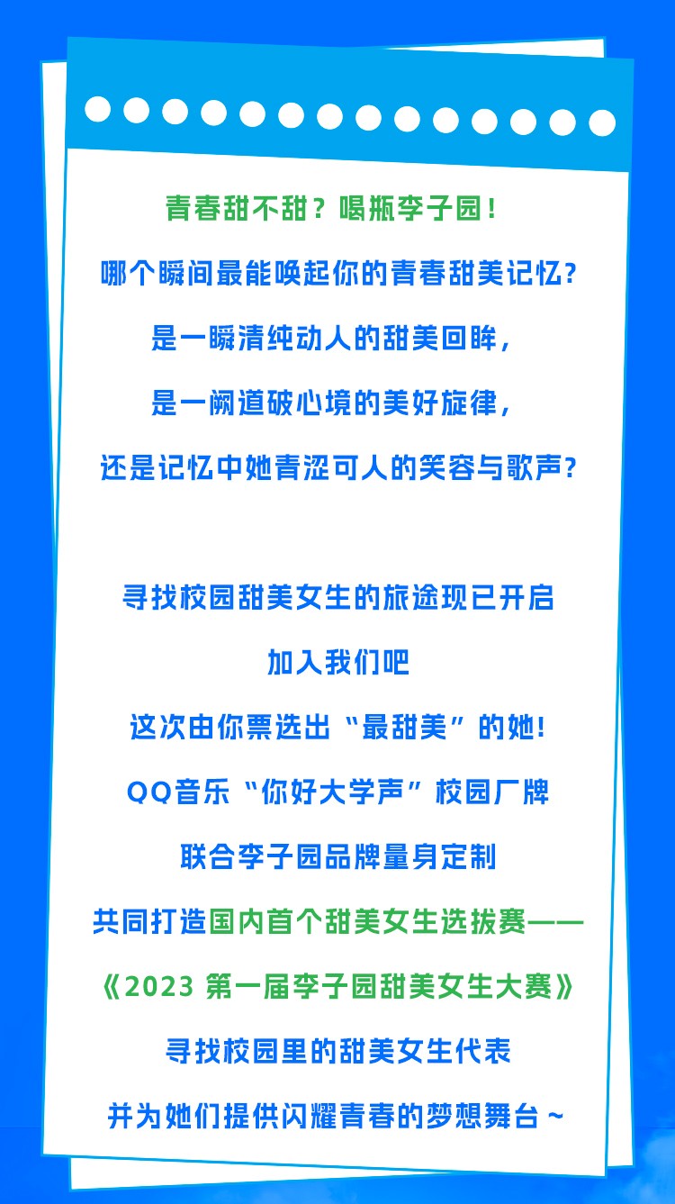 【官宣】李子園X騰訊音樂2023第一屆李子園甜美女生大賽正式啟動(dòng)